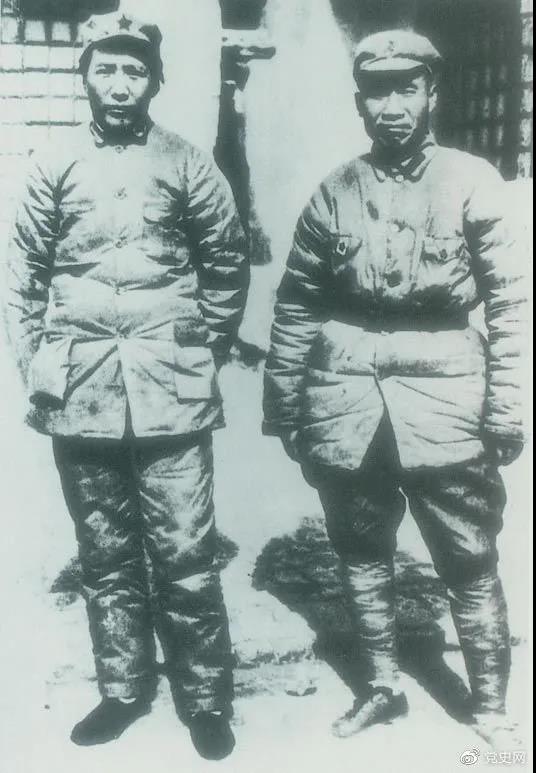 1937年7月7日,盧溝橋事變爆發(fā)。8日,中共中央通電全國,號召結成民族統(tǒng)一戰(zhàn)線抵抗日本侵略者。圖為1936年冬毛澤東和朱德在陜北。