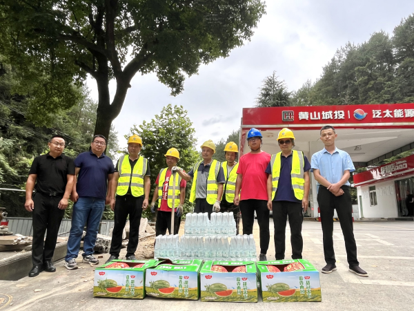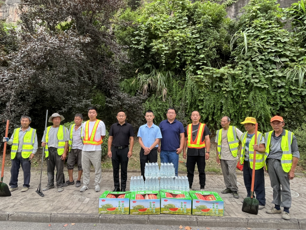 帶著對一線員工的牽掛,7月18日,市政園林公司領(lǐng)導(dǎo)班子帶隊(duì),慰問組一行先后前往花山路瀝青路面養(yǎng)護(hù)現(xiàn)場、瀝青混凝土生產(chǎn)廠區(qū)、休寧縣學(xué)府路、新安北路擋土墻重建項(xiàng)目,為高溫作業(yè)、露天施工一線施工人員送上西瓜、礦泉水等防暑降溫物品和防暑藥品。同時(shí),感謝他們的辛勤付出,并叮囑他們要注意身體,在高溫作業(yè)時(shí)要加強(qiáng)防暑降溫工作,要規(guī)范操作,加強(qiáng)自我保護(hù),把安全問題放首位,以確保項(xiàng)目安全、優(yōu)質(zhì)、高效推進(jìn)。
