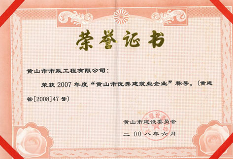 2007年黃山市優(yōu)秀建業(yè)業(yè)企業(yè)